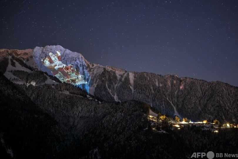 【12月8日AFP】スイスのロッシェドネー(Rochers-de-Naye)山(標高2042メートル)の山腹に6日、巨大なサンタクロースが登場した。