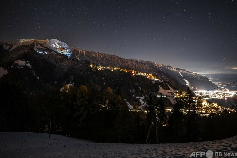 【12月8日AFP】スイスのロッシェドネー(Rochers-de-Naye)山(標高2042メートル)の山腹に6日、巨大なサンタクロースが登場した。