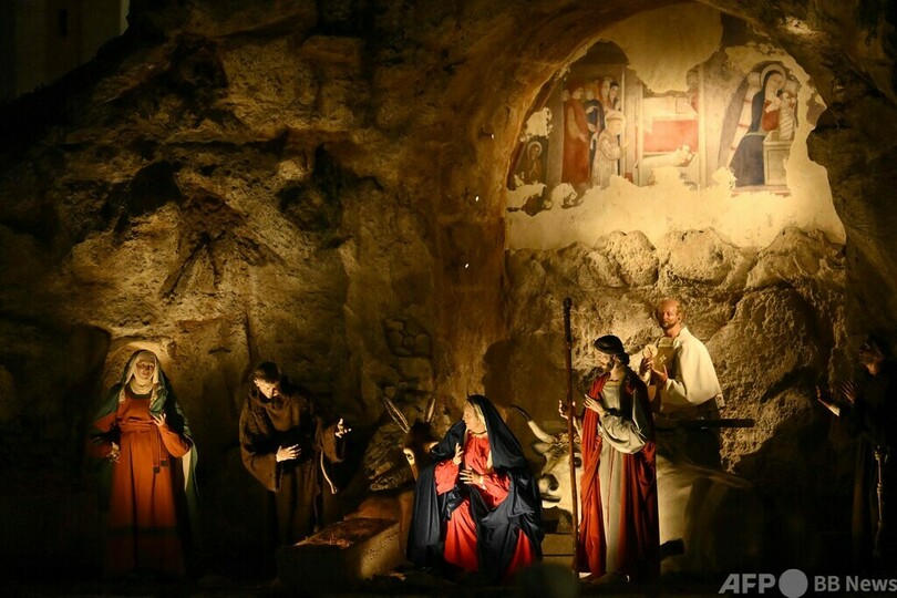 【12月10日 AFP】バチカンのサンピエトロ広場(St. Peter's Square)で9日、恒例のクリスマスツリーの点灯式が行われた。イエス・キリスト降誕の場面を再現した等身大のジオラマ(プレゼーぺ)も設置された。
