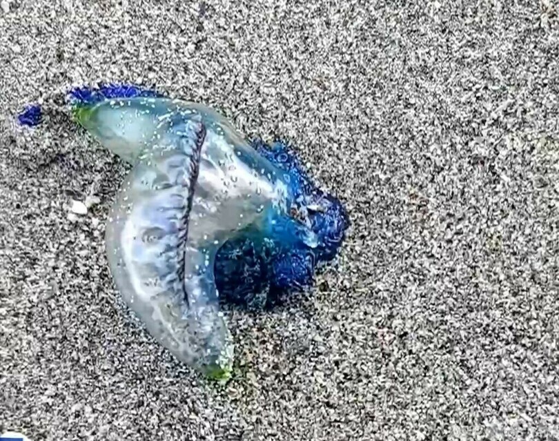 中国海南島の砂浜に毒性強いカツオノエボシ