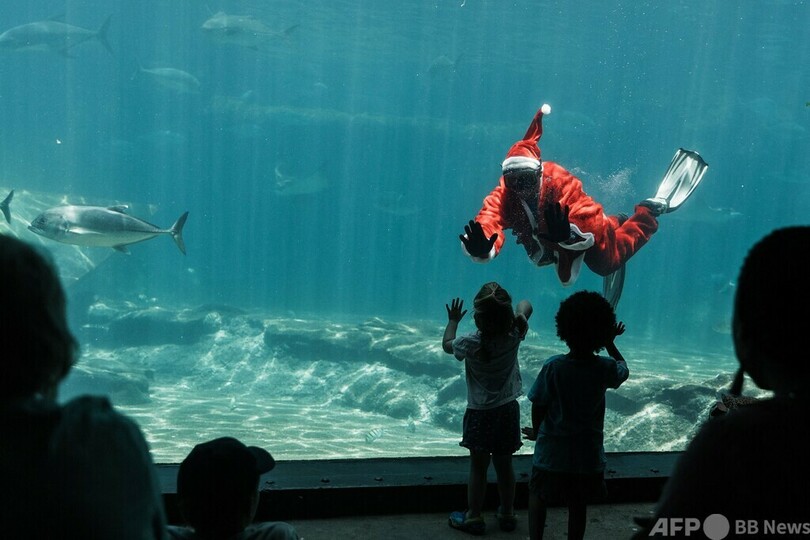 【12月15日 AFP】南アフリカのインド洋に面した港湾都市ダーバン(Durban)にあるウシャカ・シーワールド(uShaka Sea World)の水族館に14日、サンタクロースが登場した。