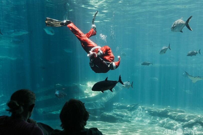 【12月15日 AFP】南アフリカのインド洋に面した港湾都市ダーバン(Durban)にあるウシャカ・シーワールド(uShaka Sea World)の水族館に14日、サンタクロースが登場した。