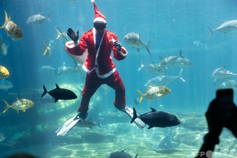 【12月15日 AFP】南アフリカのインド洋に面した港湾都市ダーバン(Durban)にあるウシャカ・シーワールド(uShaka Sea World)の水族館に14日、サンタクロースが登場した。