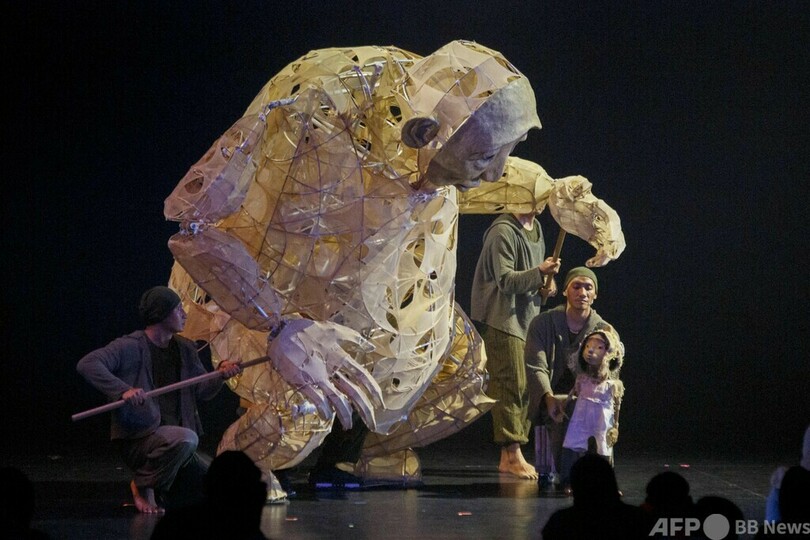 人形劇「ストリーム・オブ・メモリー(Stream of Memory)」は、シンガポール文化省とのコラボレーションプロジェクトで、人間と自然をめぐる物語を描いている。人形は、竹や再生紙、再生プラスチックでできている。(c)AFP