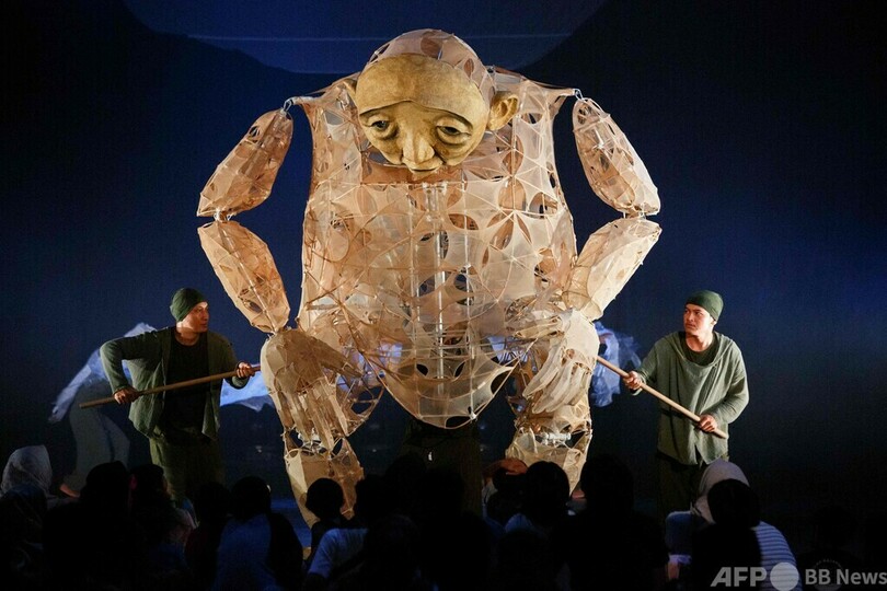 人形劇「ストリーム・オブ・メモリー(Stream of Memory)」は、シンガポール文化省とのコラボレーションプロジェクトで、人間と自然をめぐる物語を描いている。人形は、竹や再生紙、再生プラスチックでできている。(c)AFP