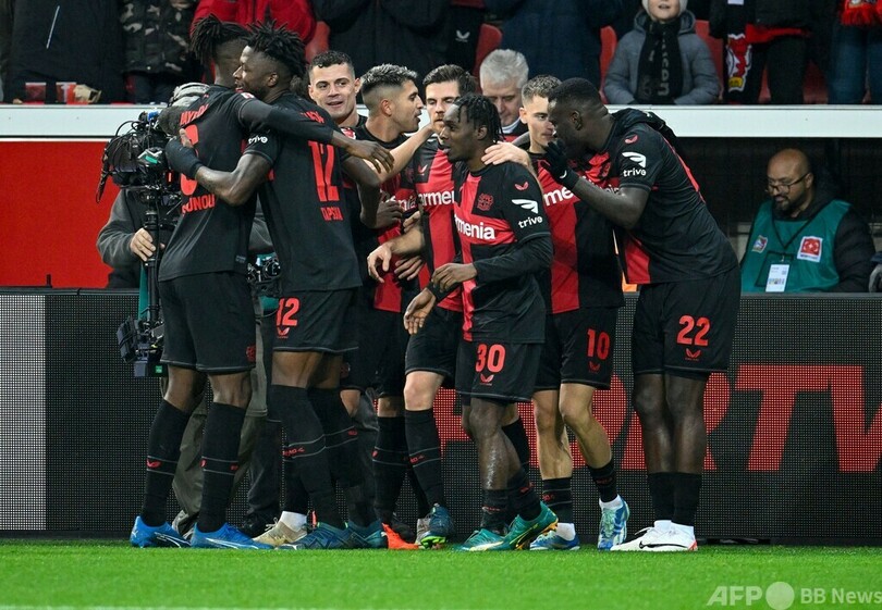 シャビ・アロンソ(Xabi Alonso)監督率いるレバークーゼンは今季無敗で、公式戦24試合で21勝3分けとしている。(c)AFP