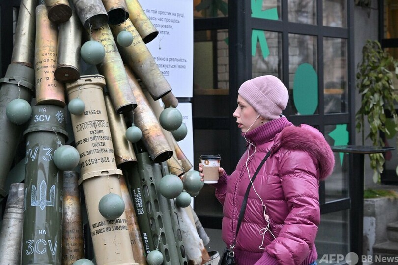 【12月19日 AFP】ロシアによる軍事侵攻が続くウクライナの首都キーウにこのほど、空薬きょうなどを使って作られたクリスマスツリーが登場した。