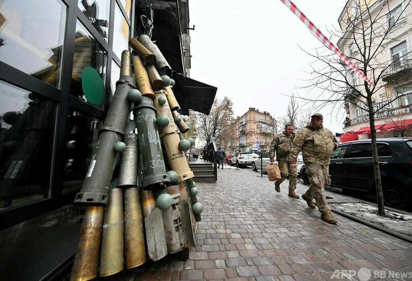 【12月19日 AFP】ロシアによる軍事侵攻が続くウクライナの首都キーウにこのほど、空薬きょうなどを使って作られたクリスマスツリーが登場した。