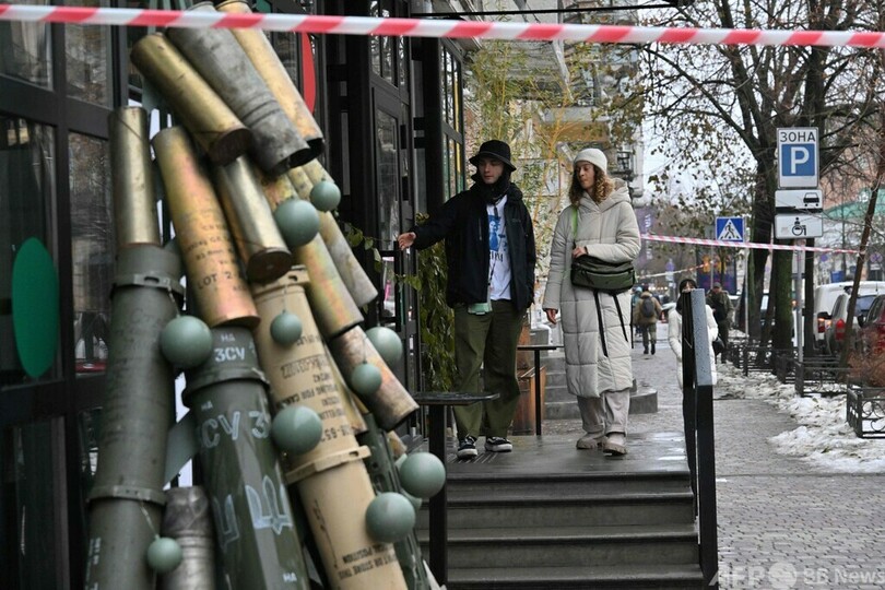 【12月19日 AFP】ロシアによる軍事侵攻が続くウクライナの首都キーウにこのほど、空薬きょうなどを使って作られたクリスマスツリーが登場した。