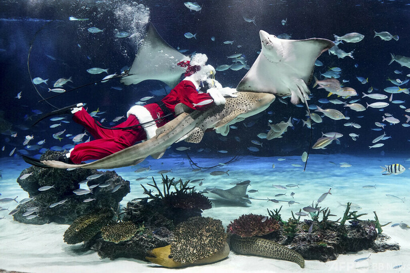 ニュース ライフ 今日の1枚 【今日の1枚】サメがサンタを連れてきた! 東京 2023年12月24日 12:15 発信地:東京 [ 日本 アジア・オセアニア ] このニュースをシェア ‹ › ❮ 1/3 ❯ 東京・豊島区のサンシャイン水族館の水槽内をサンタクロースの格好で泳ぐダイバー(2023年12月14日撮影)。(c)Kazuhiro NOGI / AFP 画像作成中 ! 【12月24日 AFP】東京・豊島区のサンシャイン水族館(Sunshine Aquarium)の水槽内をサンタクロースの格好で泳ぐダイバー。(c)AFP ライフ 一覧へ> メディア・報道関係・法人の方向け 写真・動画 購入のお問合せ>