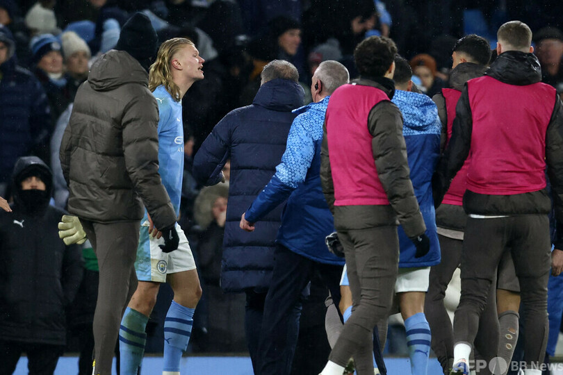 ハーランドは立ち上がってジャック・グリーリッシュ(Jack Grealish)にスルーパスを通していたため、クーパー主審の笛によって得点の可能性を摘まれたシティの選手が猛反発。特にハーランドは激怒し、試合終了後もX(旧ツイッター)などで困惑をあらわにしていた。(c)AFP