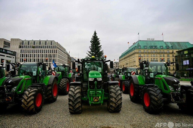 【12月19日 AFP】ドイツの首都ベルリンで18日、農業補助金の削減計画に抗議する大規模なデモが行われ、農業関係者数千人が市中心部をトラクターで占拠した。