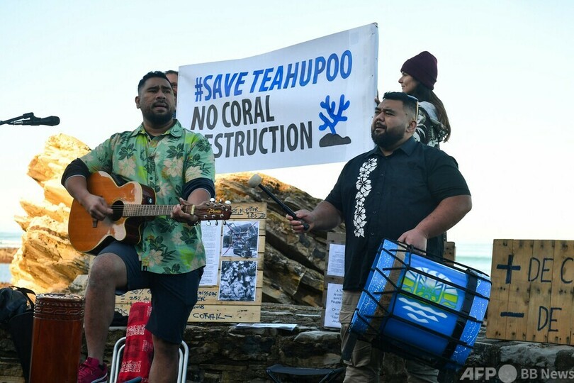 チョープーでのサーフィン競技実施をめぐっては、タワーの建設に使われる作業台船がテスト中にサンゴ礁の一部を破壊したことなどが問題となり、環境団体が猛反発。計画に反対するオンライン署名の数はこれまでに22万7000筆超に上っている。