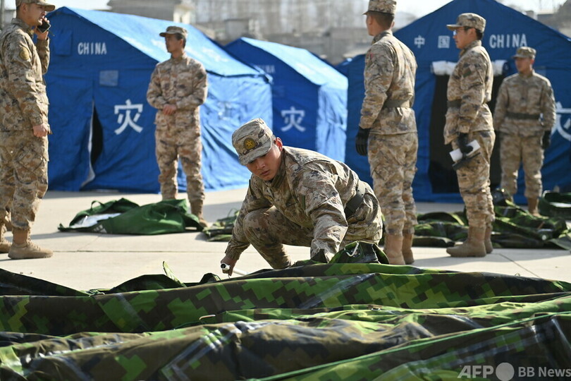 中国人民解放軍西部戦区司令部によると、同司令部の部隊約300人が18日午前4時、被害の大きかった積石山パオアン族トンシャン族サラール族自治県に到着した。武警甘粛総隊は300人以上の将校と兵士を動員し、40台以上の車両を積石山パオアン族トンシャン族サラール族自治県に配備した。彼らの任務は、個人の捜索と救助、負傷者の移送、道路障害物の除去、避難所にテントの設置などである。