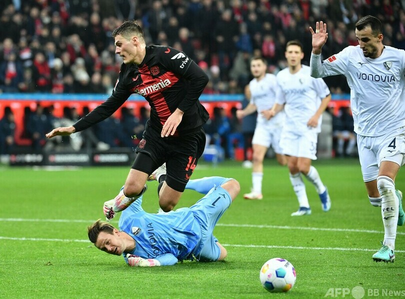 【12月21日 AFP】23-24ドイツ・ブンデスリーガ1部は20日、第16節の試合が行われ、首位バイヤー・レバークーゼン(Bayer Leverkusen)はパトリック・シック(Patrik Schick)が前半にハットトリックを達成するなどして4‐0でVfLボーフム(VfL Bochum)に快勝。VfLボルフスブルク(VfL Wolfsburg)に2‐1で勝利した2位バイエルン・ミュンヘン(Bayern Munich)との勝ち点4差を守った。