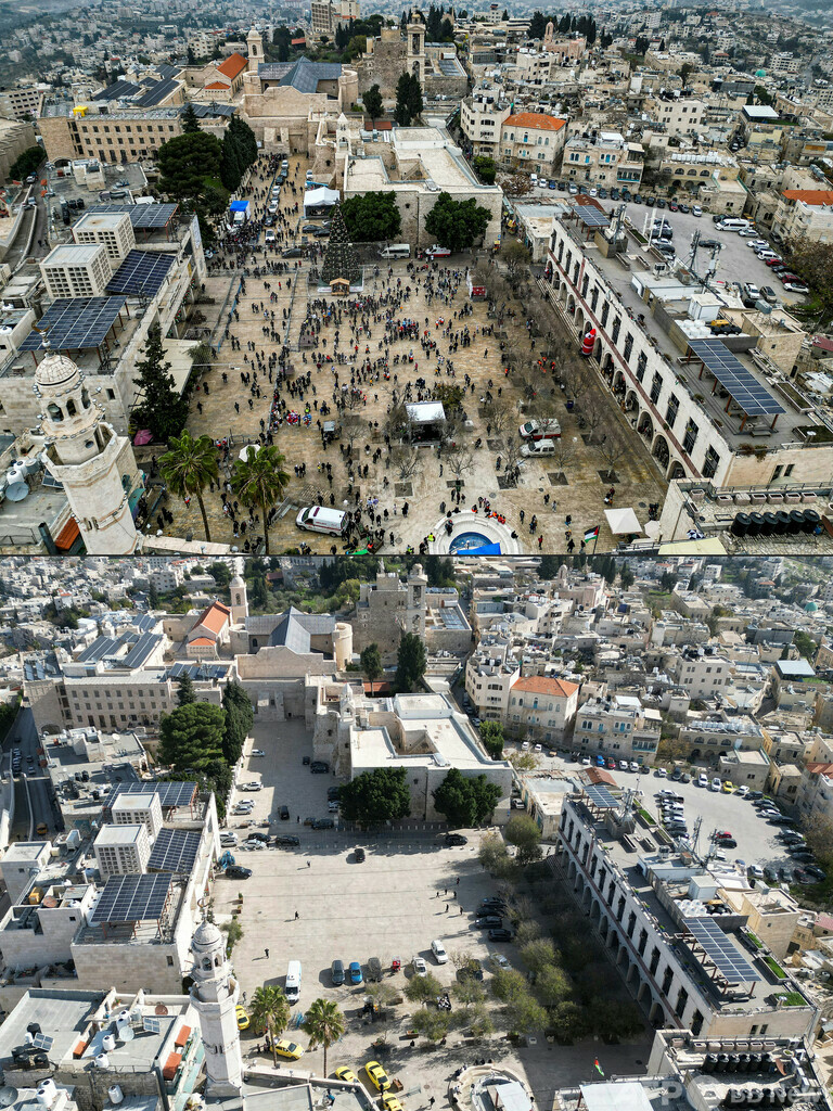 同自治区ヨルダン川西岸(West Bank)にある、イエス・キリスト(Jesus Christ)誕生の地とされるベツレヘムの聖誕教会(Church of the Nativity)には、例年であれば多くの巡礼者や観光客が訪れるが、今年は巨大なクリスマスツリーやきらびやかな電飾はなく、祝賀ムードはない。