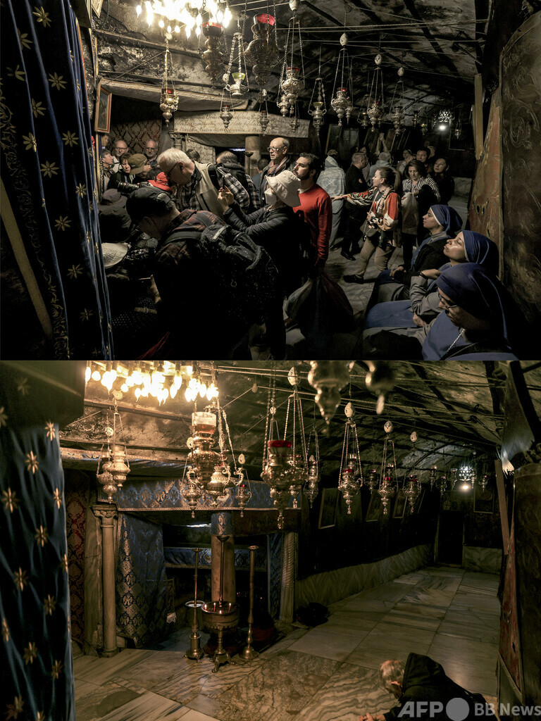 同自治区ヨルダン川西岸(West Bank)にある、イエス・キリスト(Jesus Christ)誕生の地とされるベツレヘムの聖誕教会(Church of the Nativity)には、例年であれば多くの巡礼者や観光客が訪れるが、今年は巨大なクリスマスツリーやきらびやかな電飾はなく、祝賀ムードはない。