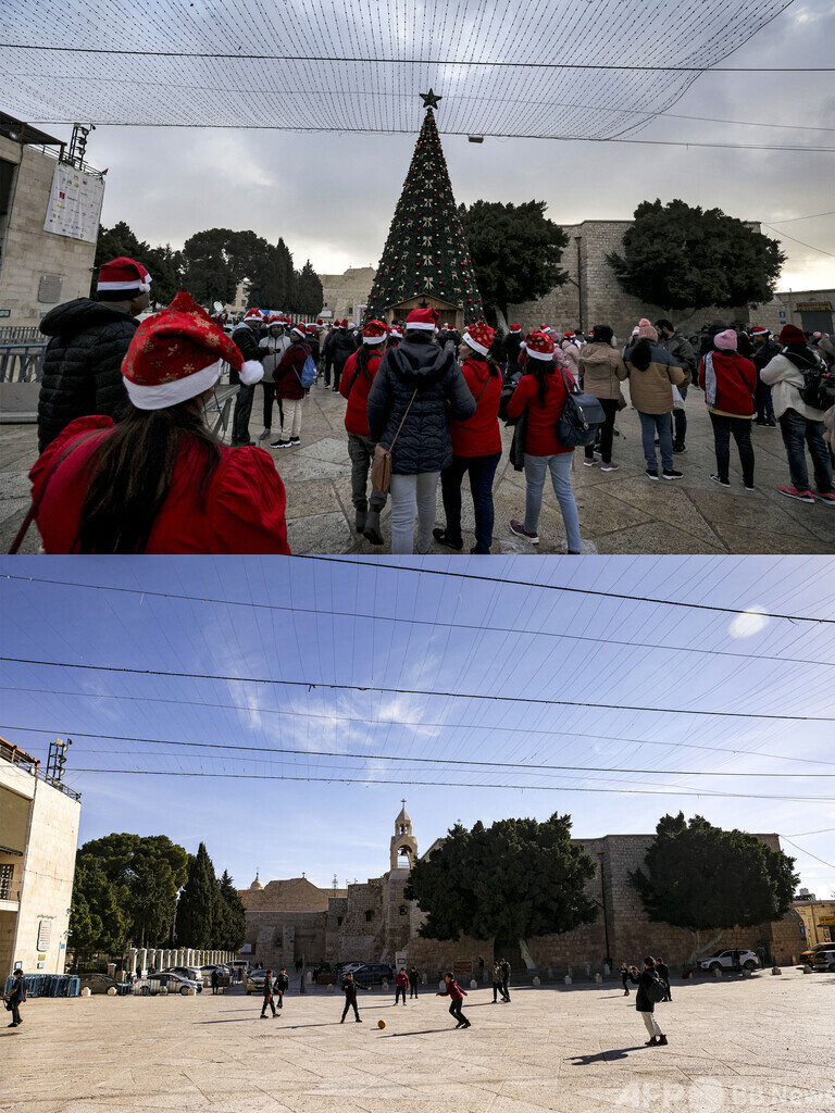 同自治区ヨルダン川西岸(West Bank)にある、イエス・キリスト(Jesus Christ)誕生の地とされるベツレヘムの聖誕教会(Church of the Nativity)には、例年であれば多くの巡礼者や観光客が訪れるが、今年は巨大なクリスマスツリーやきらびやかな電飾はなく、祝賀ムードはない。