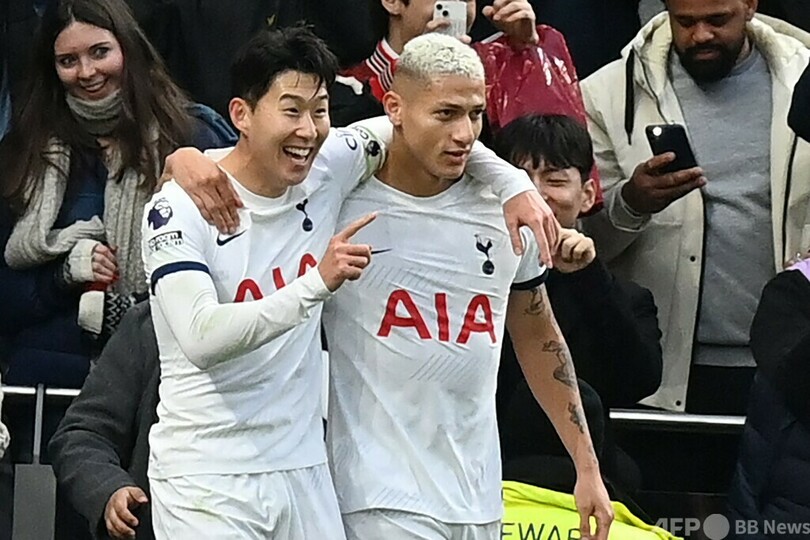 トッテナムは、ホームでエバートン(Everton)相手にリシャルリソン(Richarlison)と孫興民(Son Heung-Min、ソン・フンミン)がゴールを決めて2‐1で勝利。ルートン・タウン(Luton Town)は1‐0でニューカッスル・ユナイテッド(Newcastle United)を下し、残留争いで大きな勝利を手にした。(c)AFP/Steven GRIFFITHS