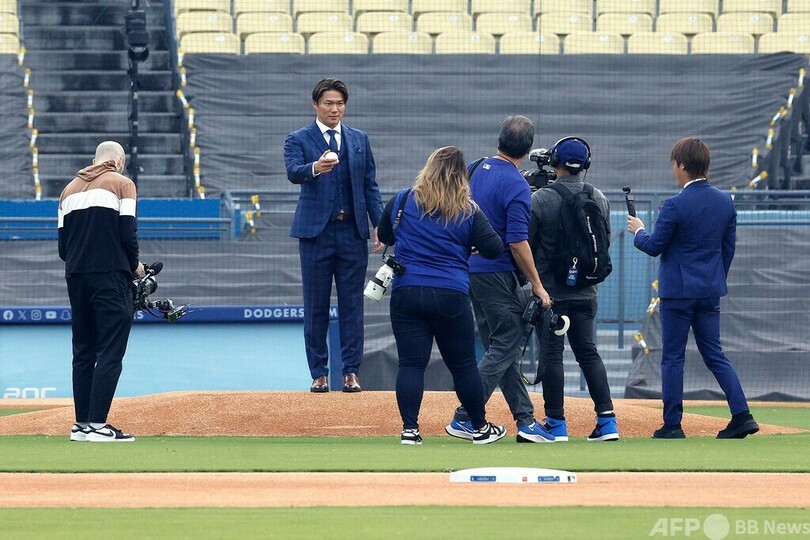 山本由伸がドジャース入団会見 本拠地でお披露目