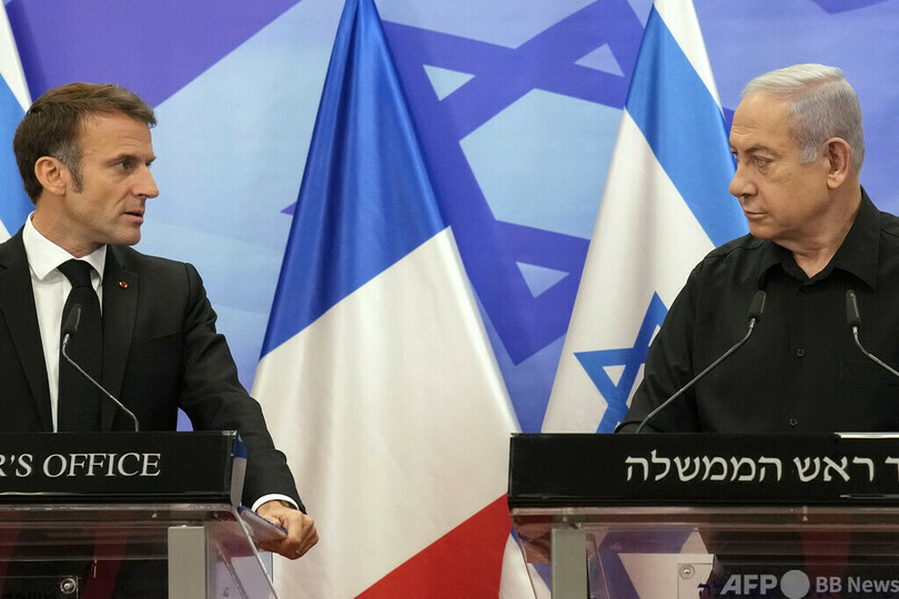 しかしマクロン氏はネタニヤフ氏に対し、ガザにおける民間人の死亡と人道上の緊急事態に「最も深い懸念」を表明。また同自治区ヨルダン川西岸(West Bank)についても、イスラエル人入植者による暴力行為に歯止めをかけ、新たな計画入植を認めないようにする措置の重要性を強調した。