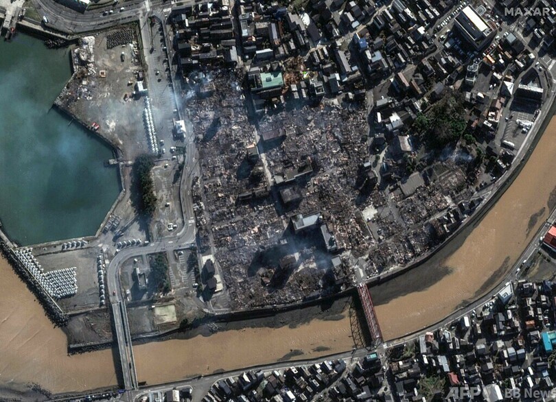 【1月3日 AFP】1日に発生した能登半島地震の被災地の地震前後の様子を捉えた衛星画像が2日、宇宙技術会社マクサー・テクノロジーズ(Maxar Technologies)により公開された。