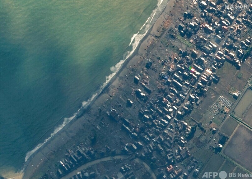 【1月3日 AFP】1日に発生した能登半島地震の被災地の地震前後の様子を捉えた衛星画像が2日、宇宙技術会社マクサー・テクノロジーズ(Maxar Technologies)により公開された。
