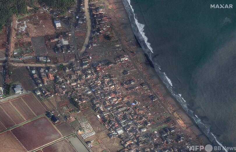 【1月3日 AFP】1日に発生した能登半島地震の被災地の地震前後の様子を捉えた衛星画像が2日、宇宙技術会社マクサー・テクノロジーズ(Maxar Technologies)により公開された。
