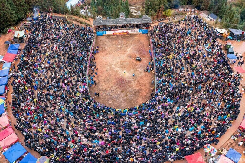 ニュース ライフ 今日の1枚 【今日の1枚】満員御礼のU字コロシアム 中国 2024年1月8日 12:15 発信地:従江/中国 [ 中国 中国・台湾 ] このニュースをシェア ‹ › ❮ 1/4 ❯ 中国南西部の貴州省黔東南ミャオ族トン族自治州従江で、闘牛を見る観衆を捉えた空撮写真(2024年1月2日撮影)。(c)AFP 画像作成中 ! 【1月8日 AFP】中国南西部の貴州(Guizhou)省黔東南ミャオ族トン族(Qiandongnan Miao and Dong)自治州従江(Congjiang)で、闘牛を見る観衆を捉えた空撮写真。(c)AFP ライフ 一覧へ> メディア・報道関係・法人の方向け 写真・動画 購入のお問合せ>