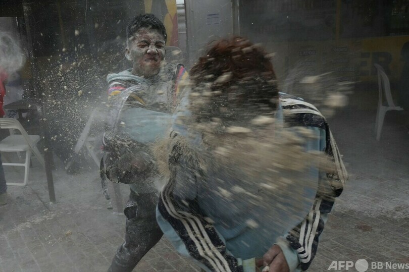パレードに粉の掛け合いも! 黒と白のカーニバル開催 コロンビア