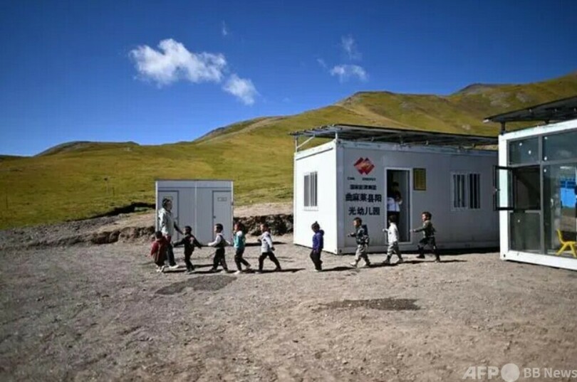 15か所の幼稚園の名は「陽光」といい、同県を支援対象とする国家エネルギーグループが2022年から累計1350万元(約2億7000万円)を投入して建設したものです。陽光幼稚園はコンテナ式で、屋根には独立電源型エネルギー貯蔵太陽光発電システムが設置され、暖房や照明などの需要を満たすことができます。2023年に15か所の陽光幼稚園が相次いで開園し、これまでに辺境の牧畜区域の子ども700人以上が入園しています。 (c)CGTN Japanese/AFPBB News