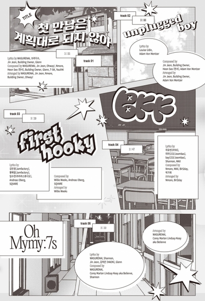 イメージには、タイトル曲「Plot Twist」から「unplugged boy」「first hooky」「BFF」と先行公開曲「Oh Mymy:7s」まで計5つの曲名と作詞・作曲チームが記されている。