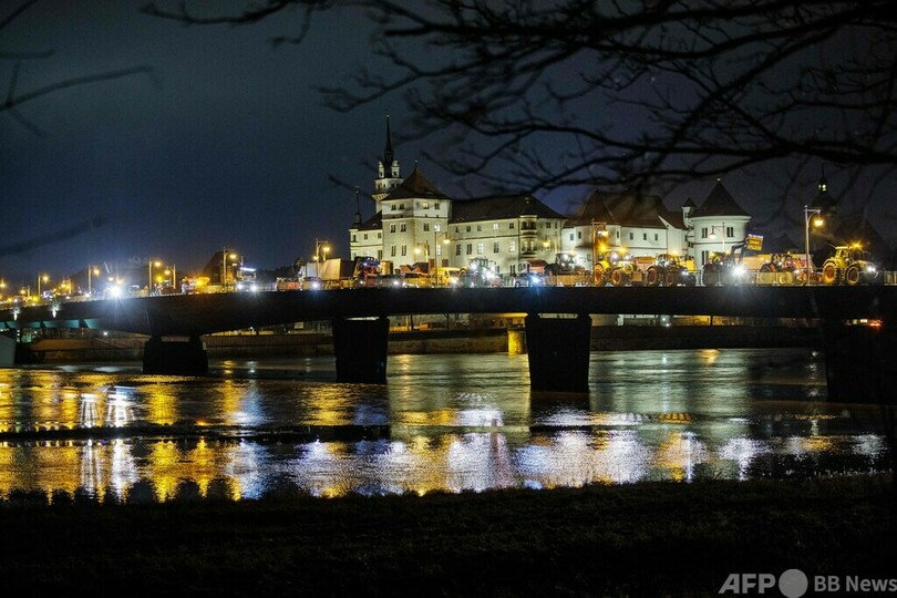 【今日の1枚】トラクターが集結する夜明け前 ドイツ