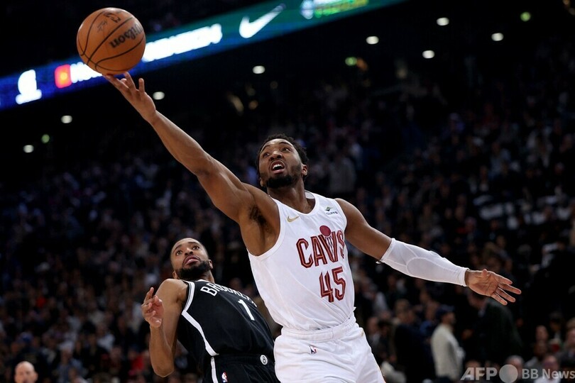 パリでNBAのレギュラーシーズンの試合が行われるのは、2022年以来3度目。この日はドノバン・ミッチェル(Donovan Mitchell)の45得点、12リバウンドの活躍でキャバリアーズが111-102で勝利し、4連勝を飾った。(c)AFP