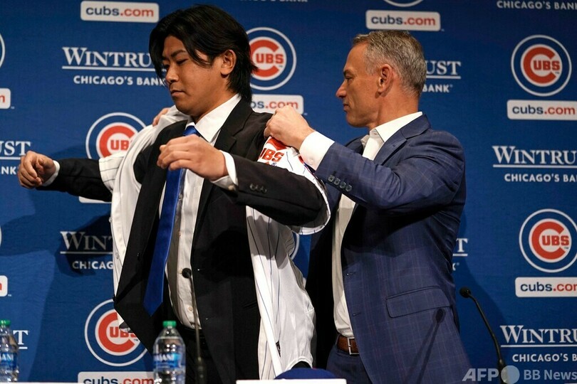 【1月13日 AFP】米大リーグ(MLB)のシカゴ・カブス(Chicago Cubs)は12日、プロ野球(NPB)の横浜DeNAベイスターズ(Yokohama DeNA BayStars)から4年総額5300万ドル(約77億円)の契約で加入した今永昇太(Shota Imanaga)投手(30)の入団会見を行った。