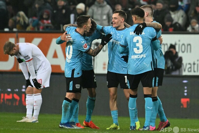 【1月14日 AFP】23-24ドイツ・ブンデスリーガ1部は13日、第17節の試合が行われ、首位バイヤー・レバークーゼン(Bayer Leverkusen)は終了間際の決勝点でFCアウクスブルク(FC Augsburg)に1-0で勝利。ボルシア・ドルトムント(Borussia Dortmund)は復帰したジェイドン・サンチョ(Jadon Sancho)が1アシストを決めて快勝した。