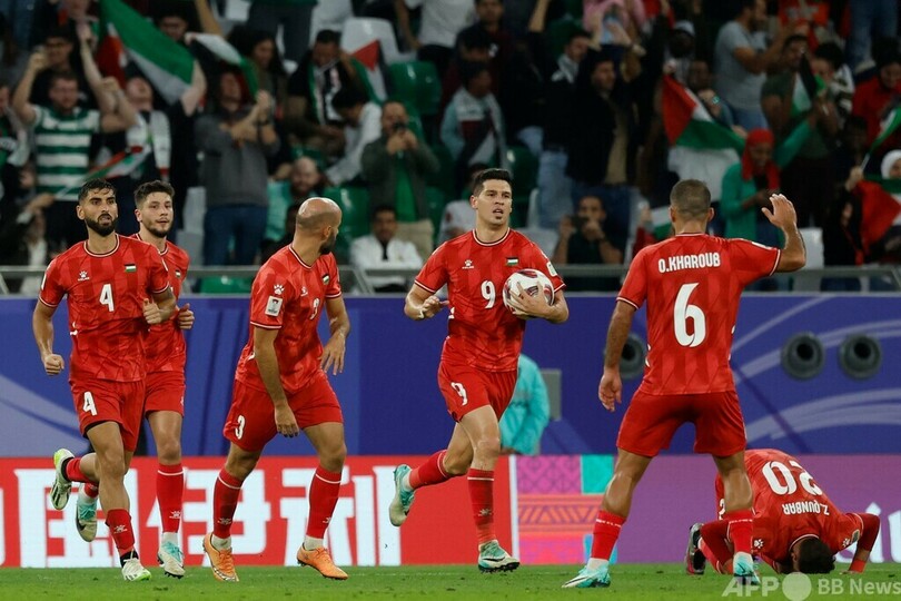 パレスチナ自治区ガザ地区(Gaza Strip)でのイスラエル軍とイスラム組織ハマス(Hamas)による戦闘開始から100日目を迎えたこの日、パレスチナは前半終了間際にターメル・スィヤーム(Tamer Seyam)が1点を返し、エデュケーション・シティ・スタジアム(Education City Stadium)に集まった約2万8000人の観衆からはこの日一番の歓声が上がった。