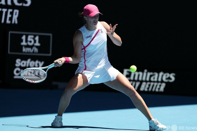 世界ランキング1位のシフィオンテクは第1セット、2度のブレークダウンに陥る苦しい展開となったが、そこから巻き返して68分の末にこのセットを獲得。第2セットはギアを切り替え、最後は5ゲーム連取で勝利を飾った。四大大会(グランドスラム)通算4勝の女王はこれでマッチ17連勝。次戦はダニエル・コリンズ(Danielle Collins、米国)と対戦する。