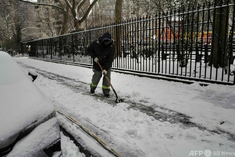 米国立気象局(NWS)は、午前0時以降にセントラルパーク(Central Park)の公式測定地点で「701日ぶりに1インチ(約.2.5センチ)の積雪が確認された」とX(旧ツイッター)に投稿。