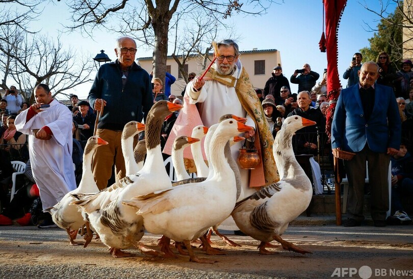 【1月18日 AFP】スペイン・バレアレス諸島(Balearic Islands)の一つ、マヨルカ(Majorca)島のムロ(Muro)やクエバスデルベセロ(Cuevas del Becerro)で17日、動物の守護聖人とされる「聖アントニオ(San Anton Abad)」の日に合わせ、動物たちが聖職者から祝福を受けた。