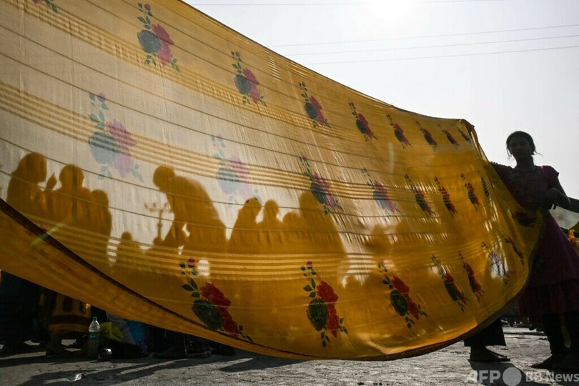 【1月28日 AFP】インド・コルカタ(旧カルカッタ)から南に約150キロのサーガル島(Sagar Island)で、沐浴(もくよく)した後に服を乾かすヒンズー教徒ら。ヒンズー教の重要な祝祭日「マカラ・サンクランティ(Makar Sankranti)」に先立ち、祭典「ガンガサガールメーラ(Gangasagar Mela)」に参加した多くのヒンズー教徒がガンジス川(Ganges River)とベンガル湾(Bay of Bengal)が合流する地点で沐浴した。(c)AFP