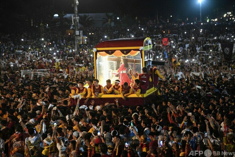 【1月23日 AFP】恒例の「ブラックナザレ祭」が開かれたフィリピン・マニラで、黒いキリスト像を覆ったガラスケースにキスをするカトリック信者。この祭りは世界有数の宗教的な催しの一つとして知られ、首都の通りを進むキリスト像に数十万もの信者が群がり、信心を示す。(c)AFP