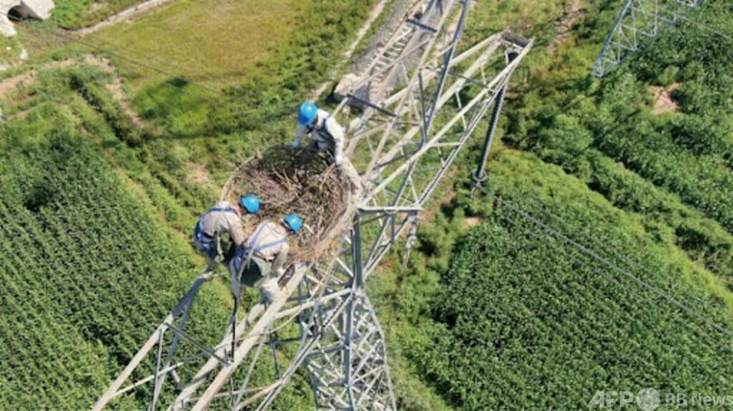 国家電網は2021年以降、天津市(Tianjin)、江蘇省、安徽省、江西省(Jiangxi)、山東省など18の省級行政区の拠点23か所で「渡り鳥ライフライン」プロジェクトを展開している。同プロジェクトにより保護された鳥は計1万3000羽以上に達した。(c)Peopleʼs Daily/AFPBB News