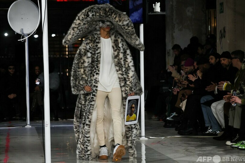 【1月31日 AFP】パリ・ファッションウィーク(Paris Fashion Week)で、ブルーマーブル(Bluemarble)2024年秋冬コレクションのメンズウェアの新作をまとったモデル。フランス・パリで。(c)AFP