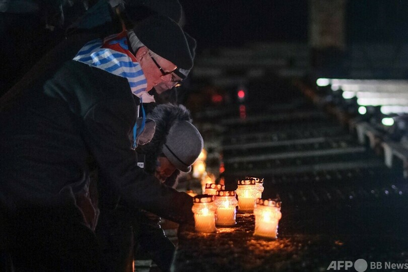 この日、ポーランドの収容所跡地での記念行事には、収容経験者やその家族が参加し、犠牲者らを悼んだ。