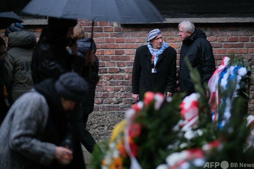 この日、ポーランドの収容所跡地での記念行事には、収容経験者やその家族が参加し、犠牲者らを悼んだ。
