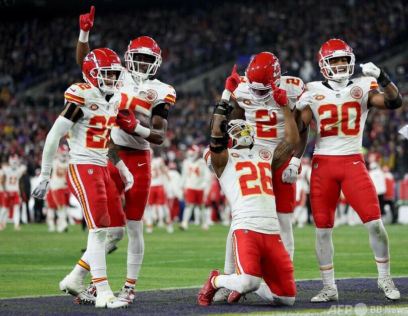 アメリカン・カンファレンス(AFC)決勝では、昨季王者のチーフスがトップシードのボルティモア・レイヴンズ(Baltimore Ravens)を17-10で破り、カンファレンス優勝を果たしてここ5年で4回目のスーパーボウル進出を決めた。