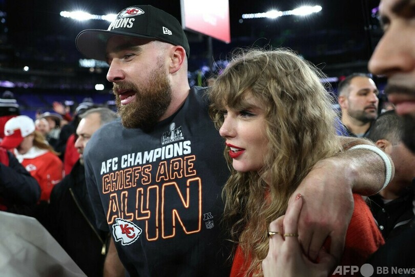 またチーフスのトラビス・ケルシー(Travis Kelce)は、歌手で恋人のテイラー・スウィフト(Taylor Swift)さんとフィールド上で勝利を喜んだ。