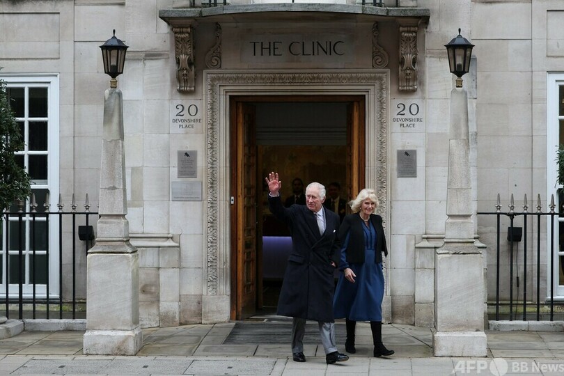 その数時間後、チャールズ国王がロンドン中心部にある病院の外にカミラ王妃(Queen Consort Camilla、76)と共に姿を現し、集まっていた人々に手を振った後、待機していた車に乗り込んだ。国王はキャサリン妃と同じ病院に入院していた。