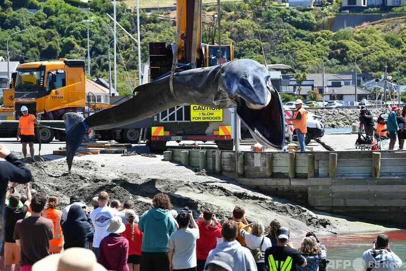 死んだクジラを一目見ようと人だかり、クライストチャーチではまれ NZ